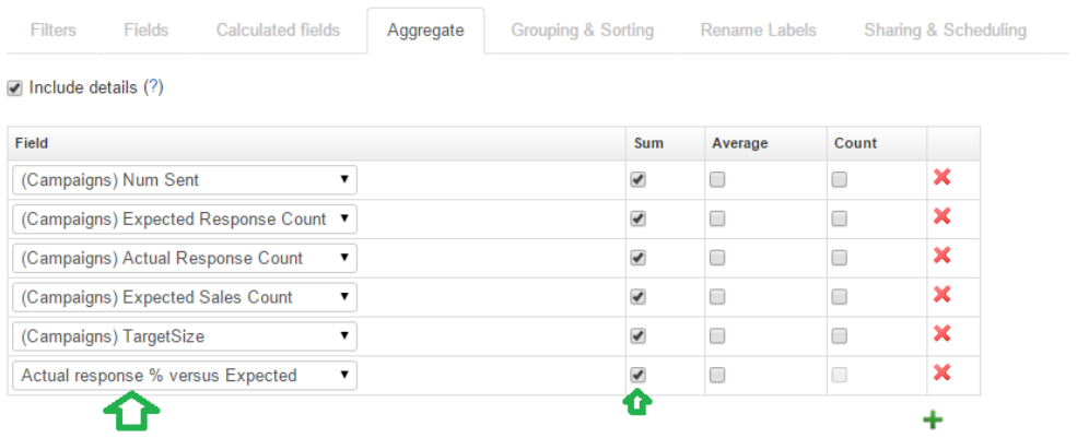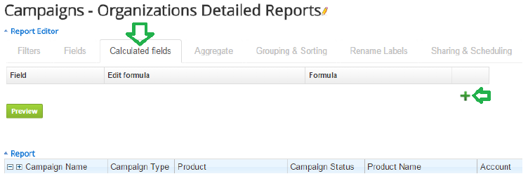 7. In the Detailed Report it is possible to Preview the changes, however, in summary or pivot reports it is better to save the report. It is also possible to average or sum the calculated value under the Aggregates tab: