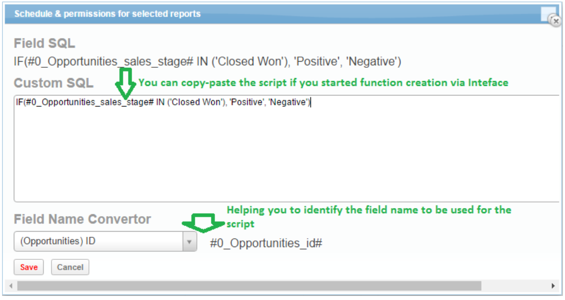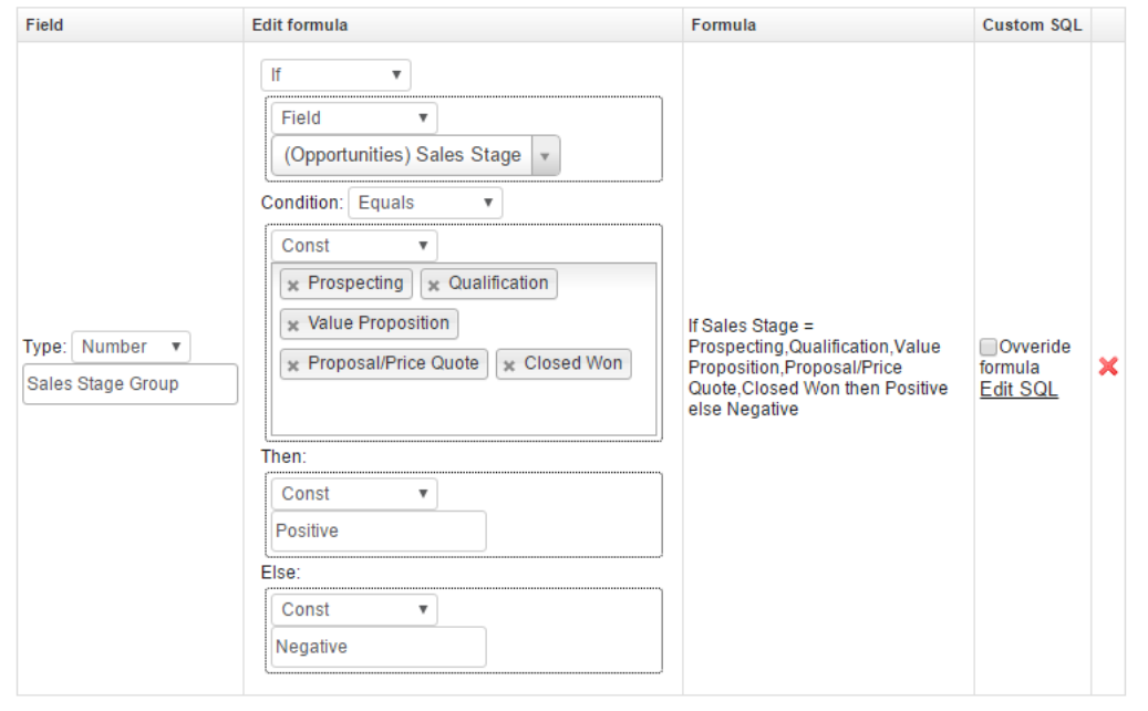 The check-box Override formula allows you to switch between the manually edited script and the original formula (before editing). Keep the check-box selected, if you wish to use the edited formula. Deselecting the check-box will use the original function.