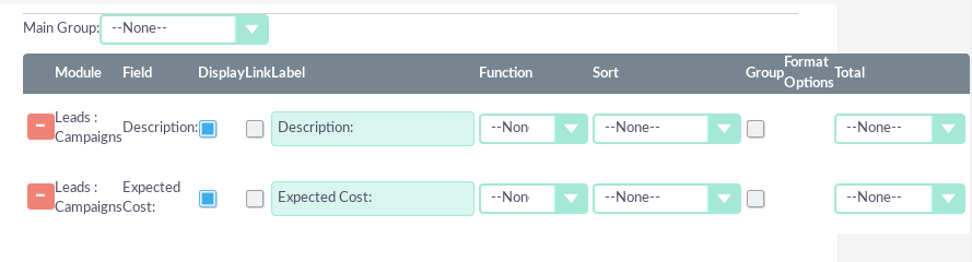 Once you have added the fields to a Report, there are several options to configure for those fields: