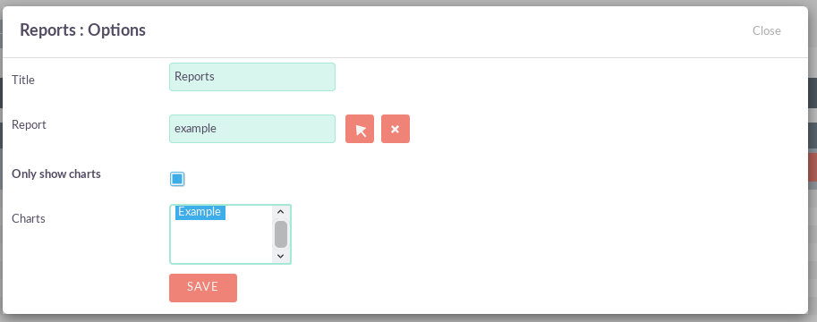 Select a chart or multiple charts and click Save. This will display the results in the selected box.