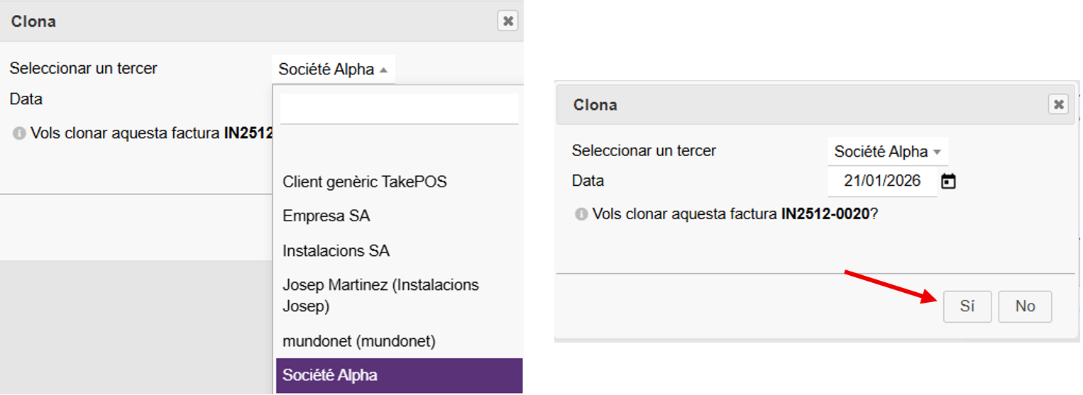Se abrirá un cuadro en el que podremos modificar el tercero y la fecha de emisión. Introducimos los datos y pulsamos el botón “Sí”.
