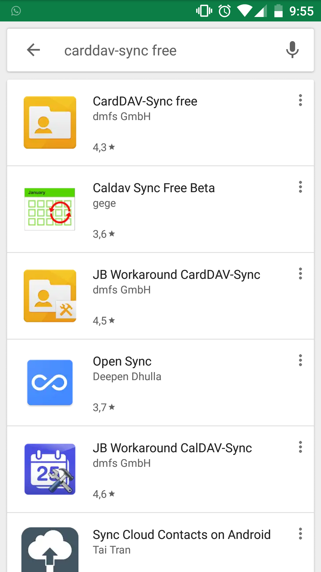 2. Per buscar-la manualment buscarem Play Store (representat amb un triangle de colors) en el nostre Smartphone i un cop dins, a la barra de recerca, introduirem carddav-sync free. Premem sobre l’aplicació i Instal·lar.