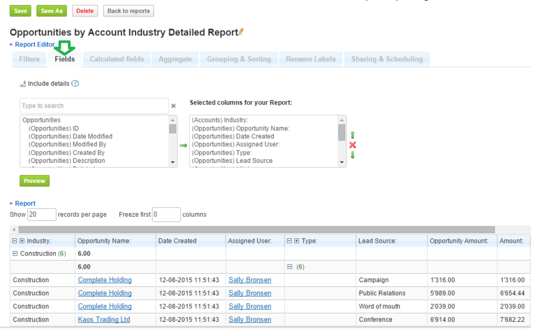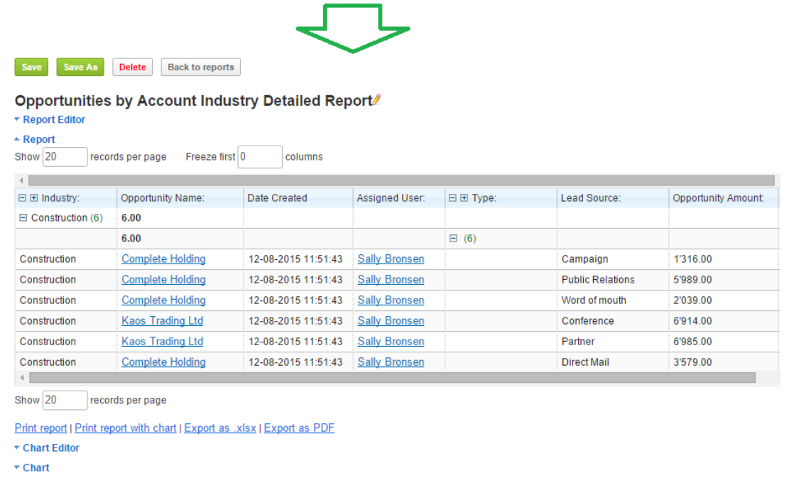 As you can see from the Screen-shot above, you can save the new detailed data as a report, export it, or use the report settings for additional filters or report layout changes, as well as to add the chart, if necessary.