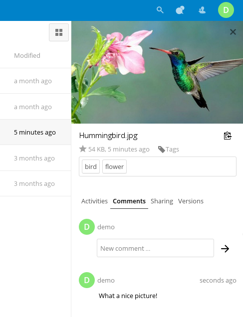 - Nextcloud can show previews of image, audio or text files if our server administrator allows it. Passing the cursor over these files we can carry out different functions:
