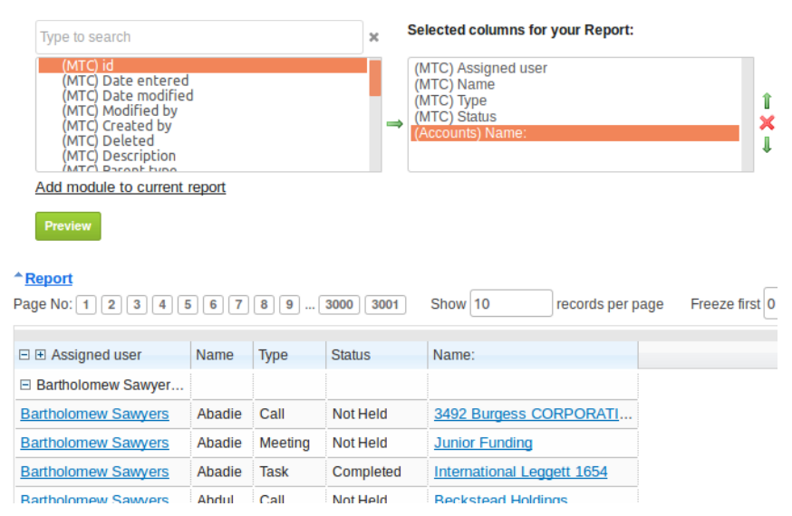 7. MTC Field Type is either Meeting, Task or Call. This field can be filtered if you only wish to see certain Calendar entries in the report.