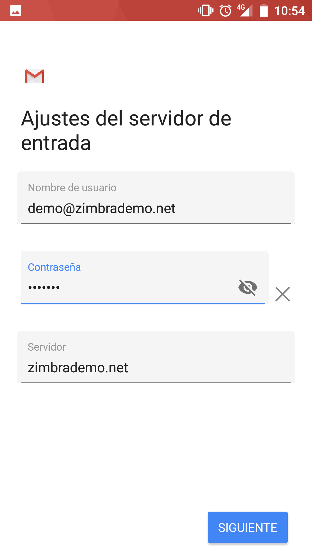 3. Once the option has been clicked, a series of screens will appear where we will have to enter the information of our account. First the email address. Second, the password. In third place the server (it will be predefined, although if your provider gives you a different one, it is necessary to change it). Fourth, we will give our account a name and finish with the process.