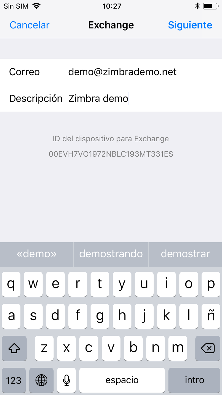 3. Once chosen, we will fill in the following fields. First of all the email address and secondly a description, which will help us to recognize it in case we have more than one email account on the device. We will press Next and a warning will appear where we will choose the option Configure manually. Another field will be added that we will have to fill in with our password.