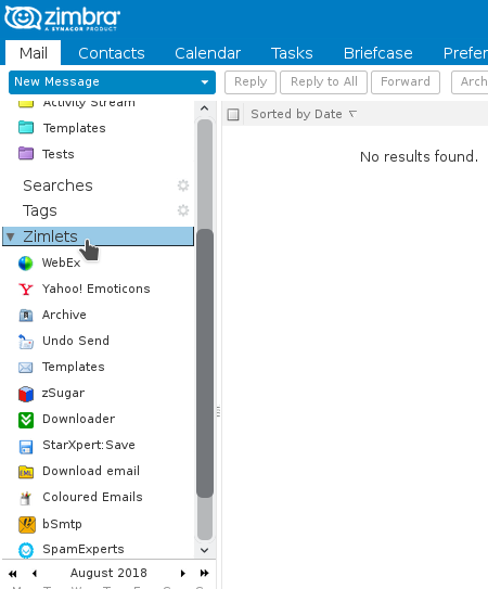 3. When we have all the desired Zimlets implemented, we will go to the main Mail page. In the left side menu, located at the bottom, we will find the Zimlets section, where all the ones we have just implemented will be added, in addition to the ones we already had implemented.