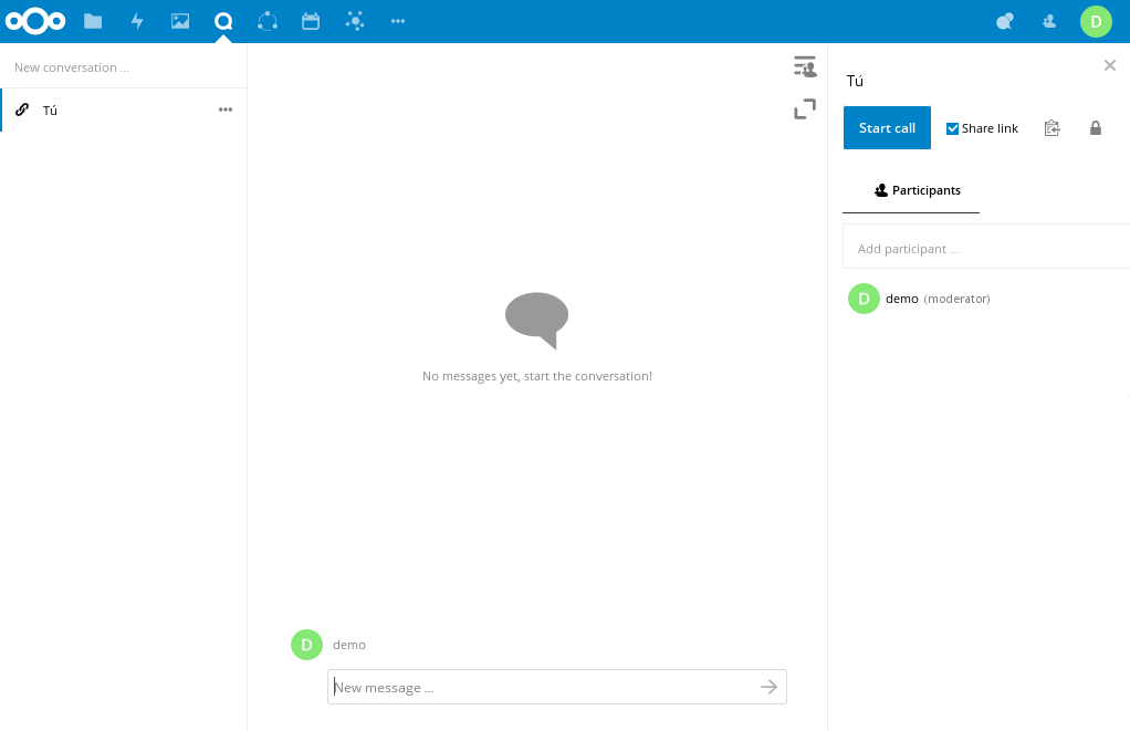 1. To start using Talk in Nextcloud we will go first to the Talk tab.