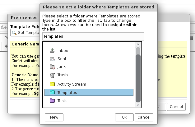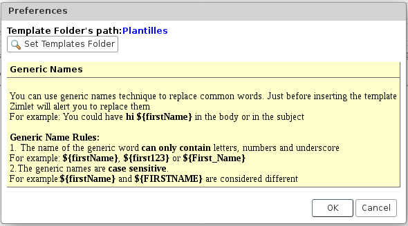 2. Once in the configuration press Set Templates Folder, to determine our template folder, where we will select our folder. If we do not have it created, we will click on New, assigning it the name Templates.