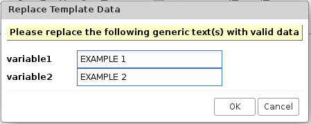 7. If we have put variables, then we will see a data entry form that corresponds to the variables that we have incorporated in the template with the formula ${VARIABLE}. In these boxes we will add all the information that we want to replace with the formula.