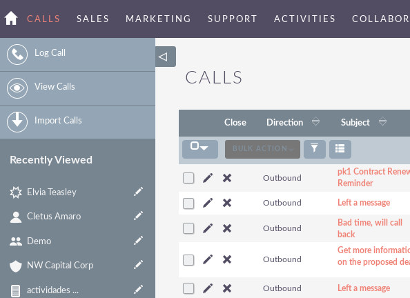 – Import calls: redirects it to the Import Wizard for the Calls module.