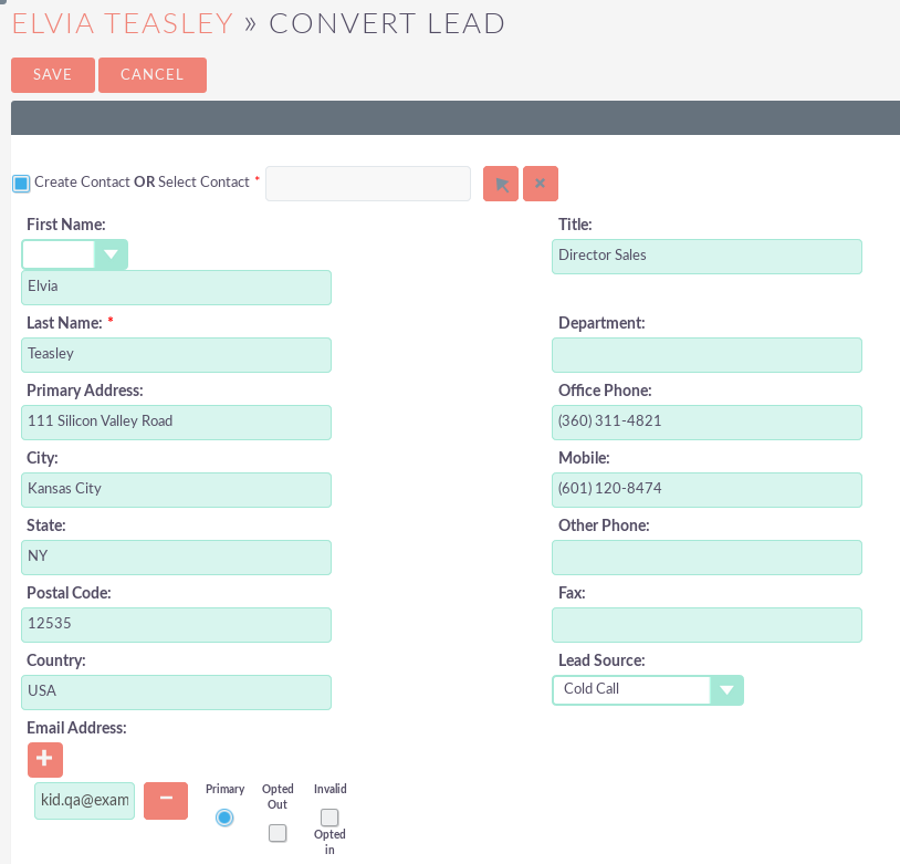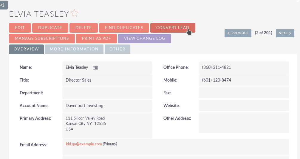 Once you have clicked on the “Convert Lead ” button, you will be directed to the Lead client page.